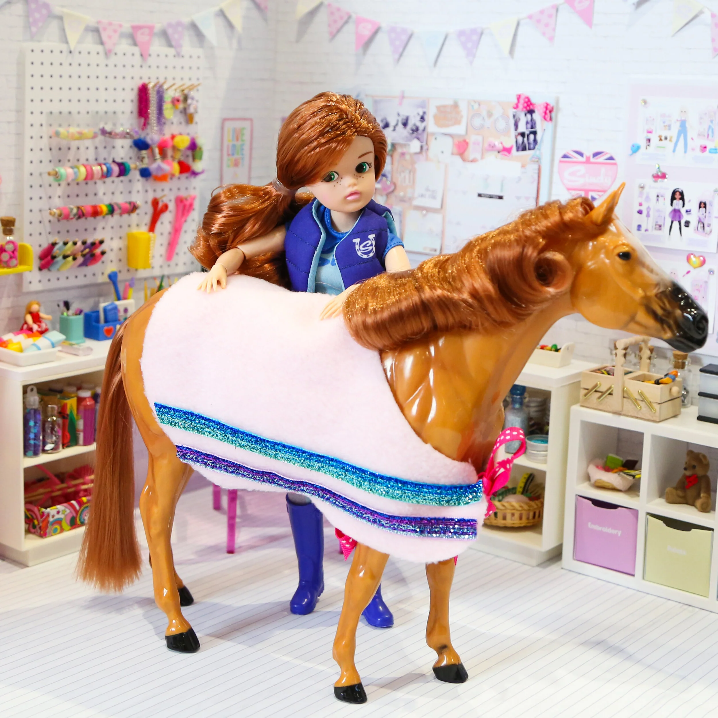 Make a blanket for Sindy’s pony to keep her cosy and warm.
