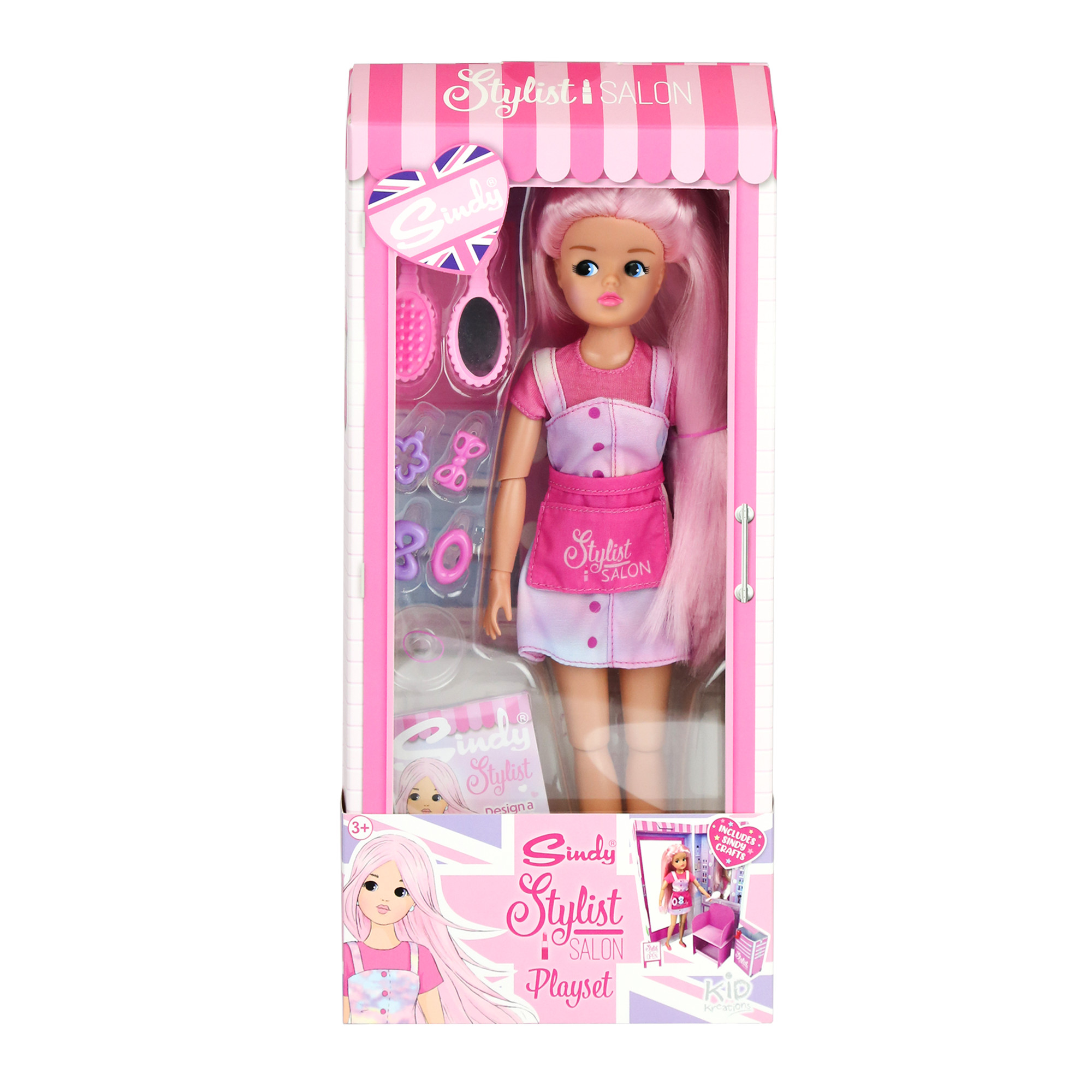 Salon Stylist Sindy also comes a hair brush, hair clips and mirror which can all be stored in her pink accessories belt.